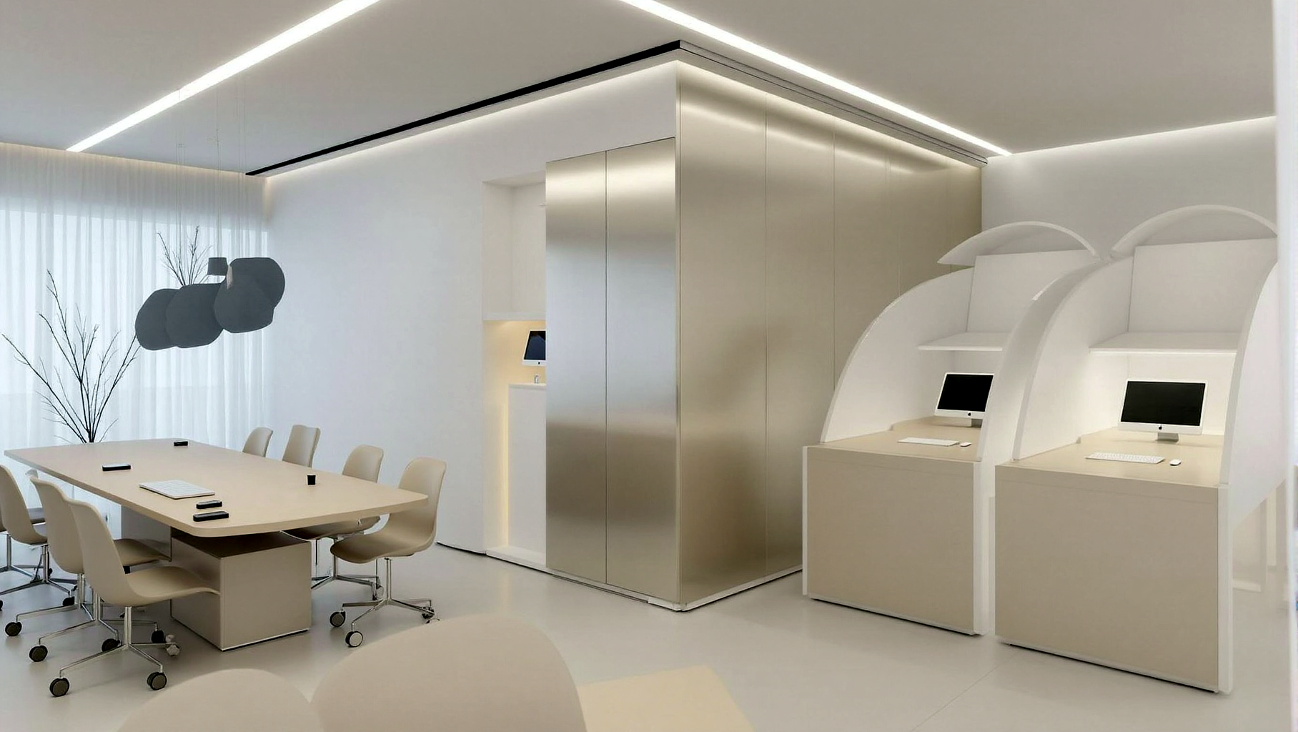 讓工作桌、協作區與臨時討論桌各自成為獨立卻相連的節點。